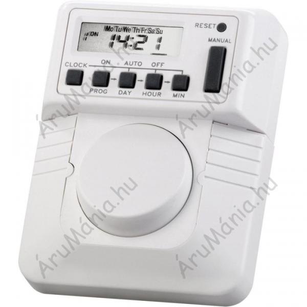 Alkalmazási terület: Beltér · Időkapcsoló óra típus: Digitális · Kapcsolási ciklus: Heti program · Kapcsolási teljesítmény (max. ): 2300 W · Kapcsolóprogramok száma: 8 · Legrövidebb kapcsolási idő: 1 perc · Max. kapcsolási áram: 10 A · Méret, magasság: 103 mm · Méret, mélység: 32 mm · Méret, szélesség: 83 mm · Nyári-/Téli időátállás: Manuális · Szín: Fehér · További műszaki adatok: 2300 W ohmos terhelés/1150 W induktív terhelés · Védelmi típus: IP20 · Üzemi feszültség: 230 V/AC